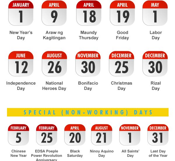 Regular and Special Non-Working Holidays for 2019 (Proclamation No. 555)